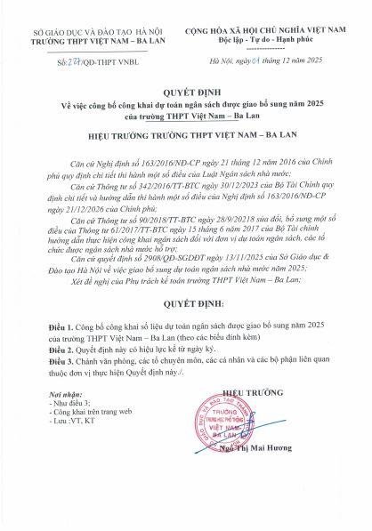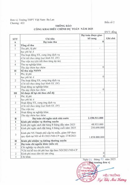 CÔNG KHAI DỰ TOÁN NGÂN SÁCH ĐƯỢC GIAO BỔ SUNG NĂM 2025