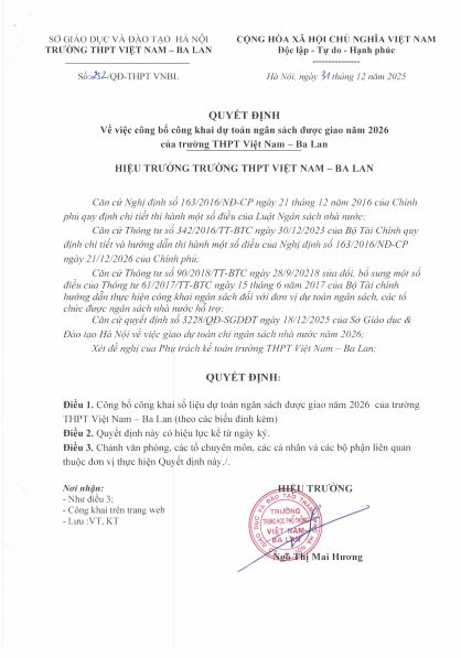 CHÚC MỪNG TÂN PHÓ HIỆU TRƯỞNG TRƯỜNG THPT VIỆT NAM- BA LAN